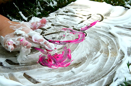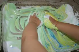 Nope shaving cream is not just for shaving. Get a bottle of shaving cream and spray shaving cream on the kitchen table or other smooth surface (please test this first and  make sure it will not discolor the furniture!). You and your child can draw in the foam or make a snowman,rainbow etc., out of the foam for as long as the foam lasts.  Wear clothes that you don’t mind getting a lil messy …..a lot. After the shaving cream starts to dissolve all you need to do a wipe down the table for a quick clean up. I love  this because there is no real mess; it makes your house smell good (and believe it or not does a great job cleaning your furniture!). Your child will also think it is so kewl that you are allowing them to play with shaving cream. “It is almost as if you are letting them do something mischievous”.