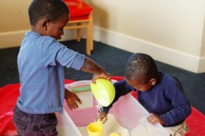 Ok so I know money can be funny and who wants to waste food? but this is a genius for those kids who love to play with sand and moms like me who hate it. Grab a   5-10lb   bag of rice and place it in a plastic container.  Make sure it’s enough space for the child to dig his hands in and scoop. I use the extra-large aluminum pans ( you know the ones you cooked the Turkey in ) And just Pour all the rice in. Some parents go as far as getting a kiddie pool or a huge storage container . It doesn’t matter. All I know is, it’s an easy sweep up or even if you put a mega cloth or towel under the container to catch some runaway rice it’s an easier clean up. I know a mom that fills half of a 2 liter soda bottle with the grain, seals it tight and just lets her daughter go crazy with it. It makes wonderful music…. 😉